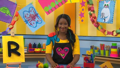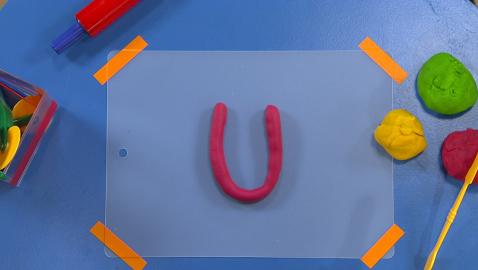 Louis, Josée et Lexie transcrivent les lettres de l'alphabet avec de la pâte à modeler. Lexie fait la lettre L.