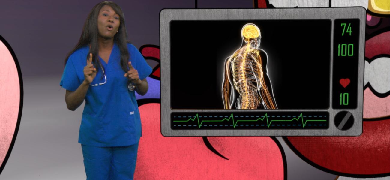 Lexie explique que le corps humain est composé de 150 000km de nerfs qui permettent de percevoir les sensations.