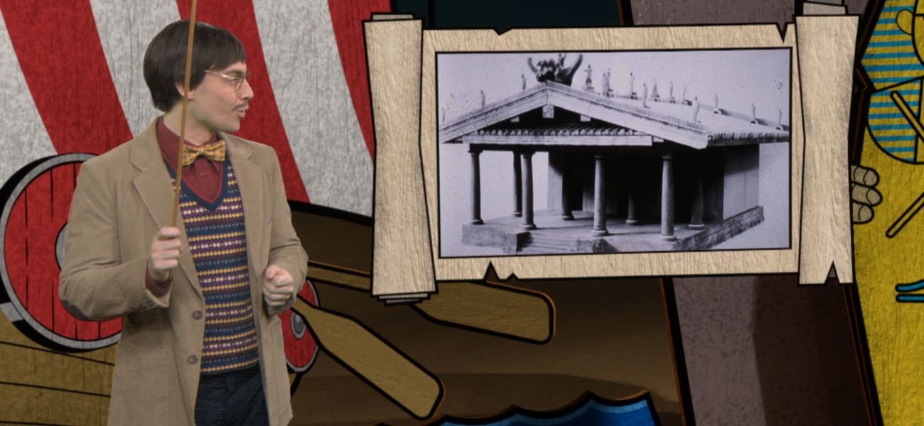 Christopher explique que les Étrusques, peuple de l'Italie antique, se sont beaucoup inspiré des Grecs pour l'architecture de leurs bâtiments.