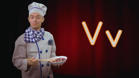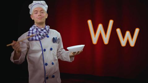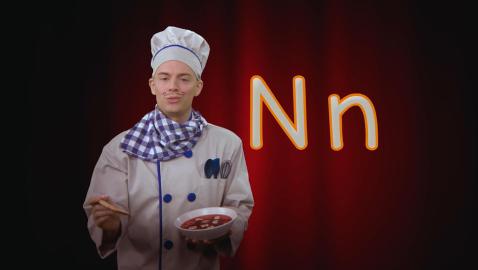 A... B... C... Chef Alphabet adore l'opéra et les lettres de l'alphabet! Pas étonnant que sur scène, il s'amuse à chanter l'alphabet, encouragé par son fidèle public, des nouilles alphabet, ha ha! Apprends à écrire la lettre n minuscule avec Chef Alphabet.