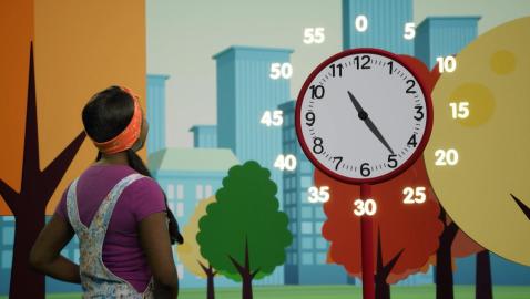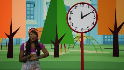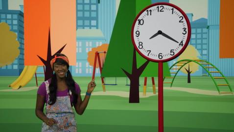Rejoins Lexie dans le rigolo parc mathématique 1, 2, 3, jouons et découvre comment lire 1 heure sur une horloge.