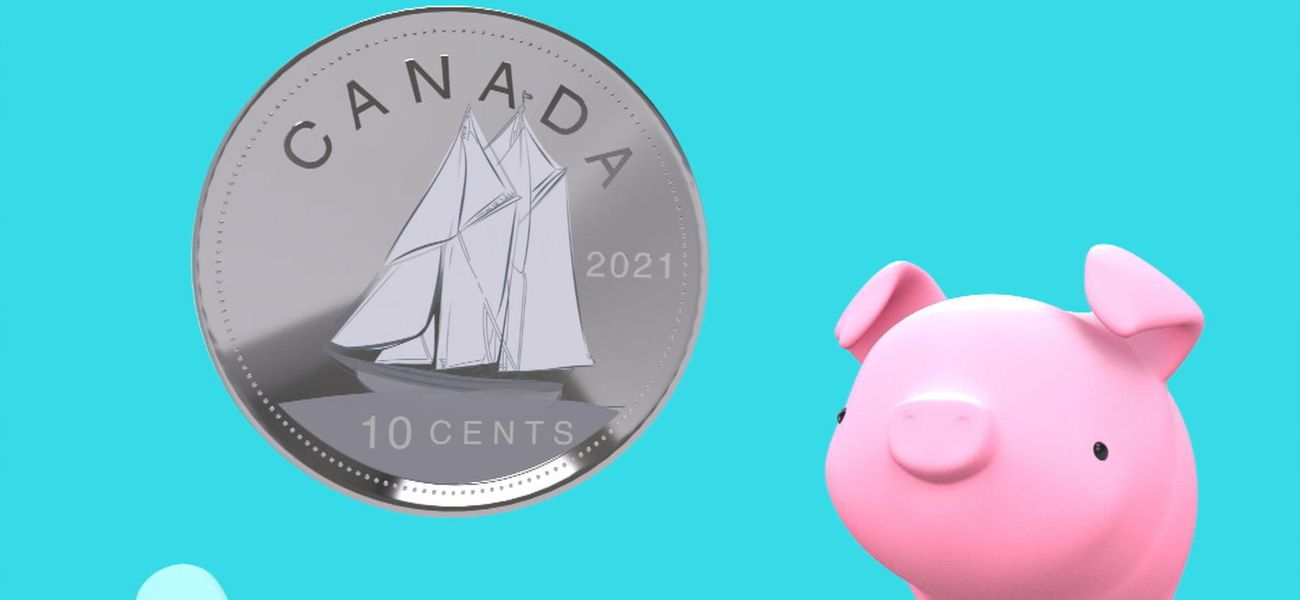 Peux-tu identifier la pièce de 10 cents parmi les pièces de monnaie canadienne? Quelle image se retrouve sur cette pièce?