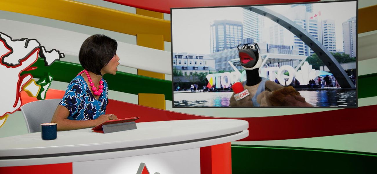 Aujourd'hui, la chef d'antenne Alice et son journaliste de terrain la marionnette Jean-Christopher Bernache nous donnent des détails fascinants sur le drapeau de l'Ontario. Quel drapeau!