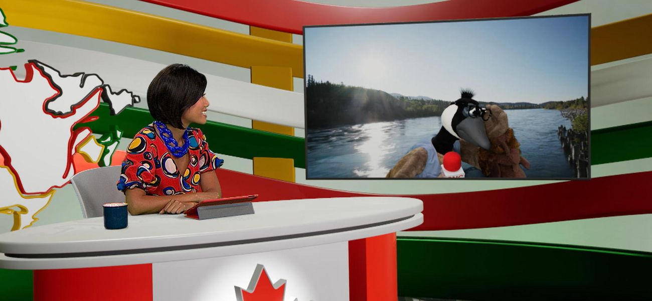 Aujourd'hui, la chef d'antenne Alice et son journaliste de terrain la marionnette Jean-Christopher Bernache nous donnent des détails fascinants sur le drapeau du Yukon. Quel drapeau!
