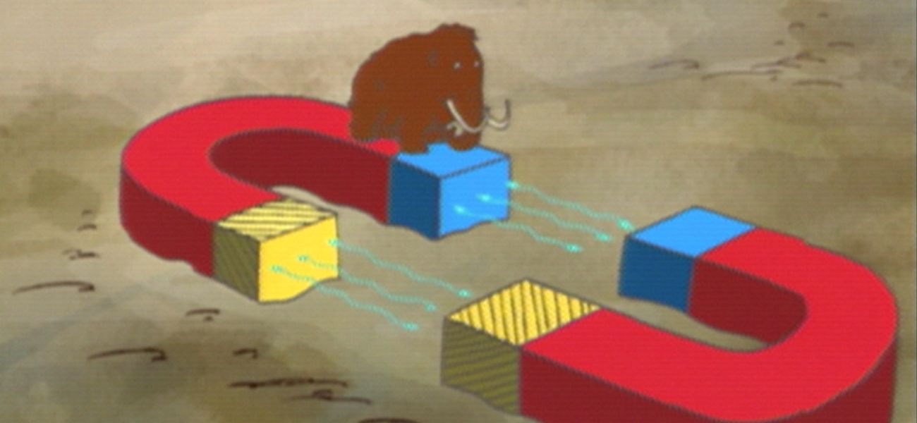 Même sur l'île des mammouths, un malheur est vite arrivé. Un jour ensoleillé, le pont qui mène à l'île des pâturages s'effondre soudain, laissant Barnabé et son troupeau bloqués sur l'autre rive! Heureusement, les habitants de l'île construisent bientôt une embarcation en se basant sur les principes du champ magnétique qui ramènera les mammouths au village.