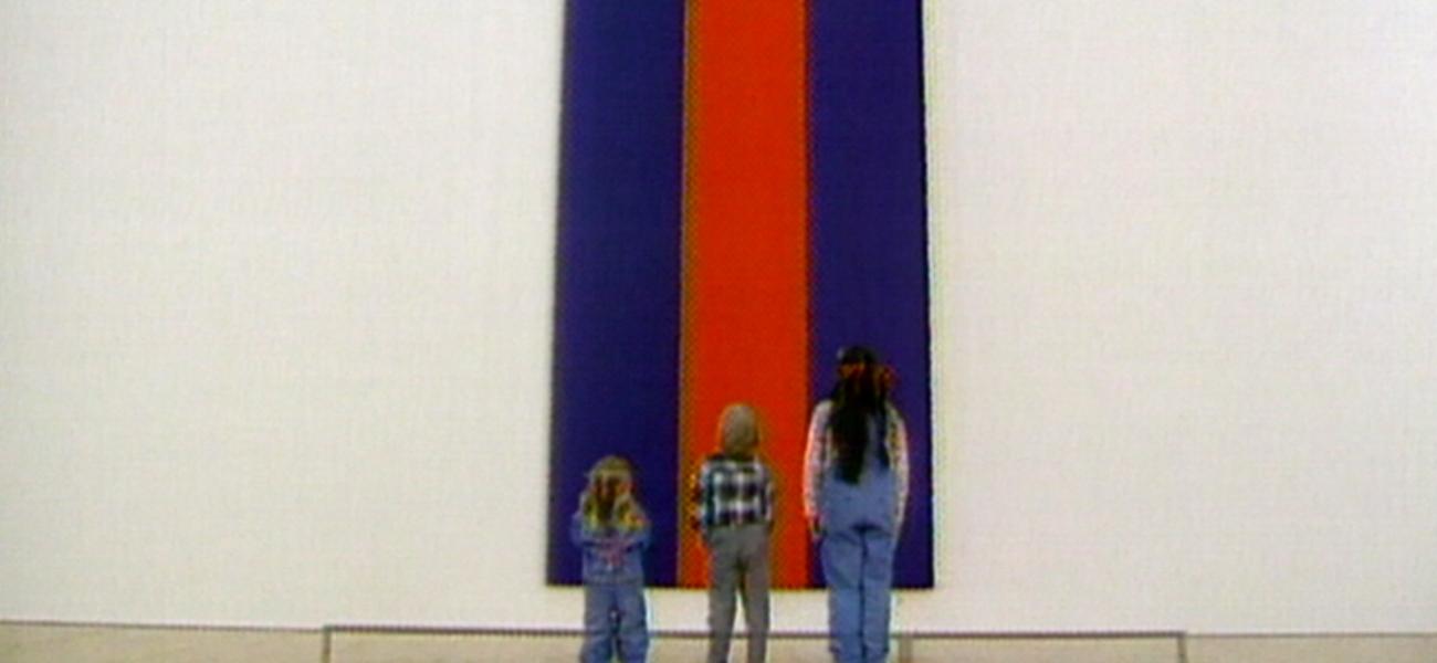 Les enfants analysent l'œuvre Voix de feu de Barnett Newman, datant de 1967.