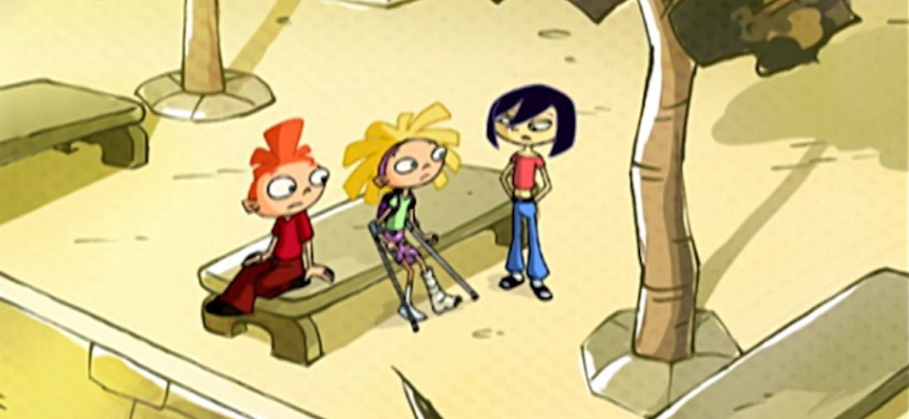 À l'école, les enfants jouent au ballon dans la cour. Emma arrive en béquilles car elle a une jambe dans le plâtre. Accueillie par ses amis, elle s'installe sur un banc pour attendre l'entrée en classe. Anticipant la sonnerie, Emma se dirige lentement vers l'entrée et se retrouve au milieu du jeu. Ça chahute et ça crie autour d'elle et elle a peur de se faire bousculer. Célestin fonce et rappelle les élèves à l'ordre. Réalisant qu'ils auraient pu la faire tomber, tous aident Emma.