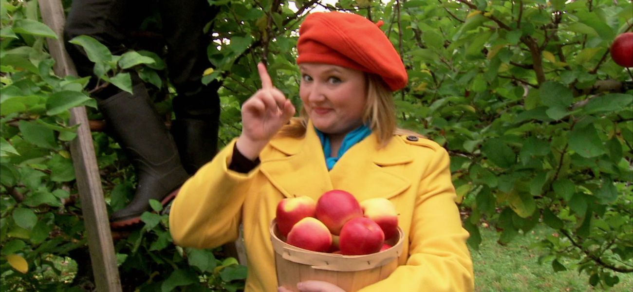 Josée and Louis share their autumn discoveries. They introduce us to the changes, activities and foods associated with this season. Here, they pick apples from an apple tree.