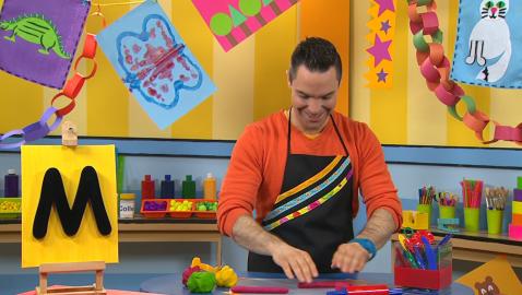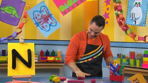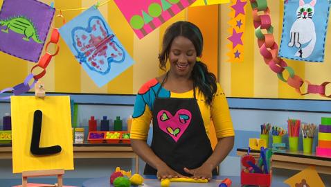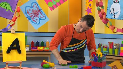 Louis, Josée and Lexie reproduce the letters of the alphabet with modeling clay. Louis makes the letter Q.