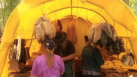 Au pow wow, Charlie visite des kiosques d'artisanat traditionnel.