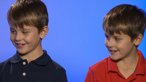 Gaston le raton interviews twin children. In this clip, he asks them what it's like to be identical!