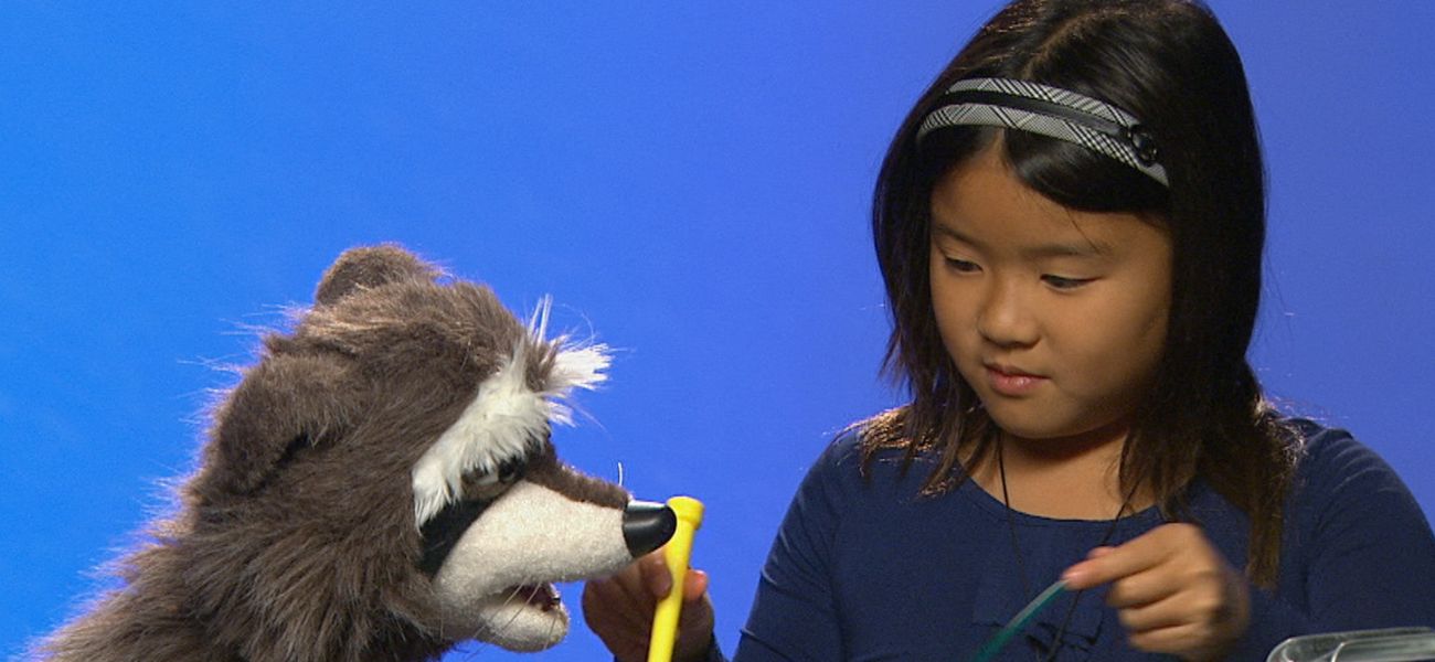 Gaston the raccoon interviews Olivia. In this clip, he shows her objects he found in a garbage can to find out what they are!