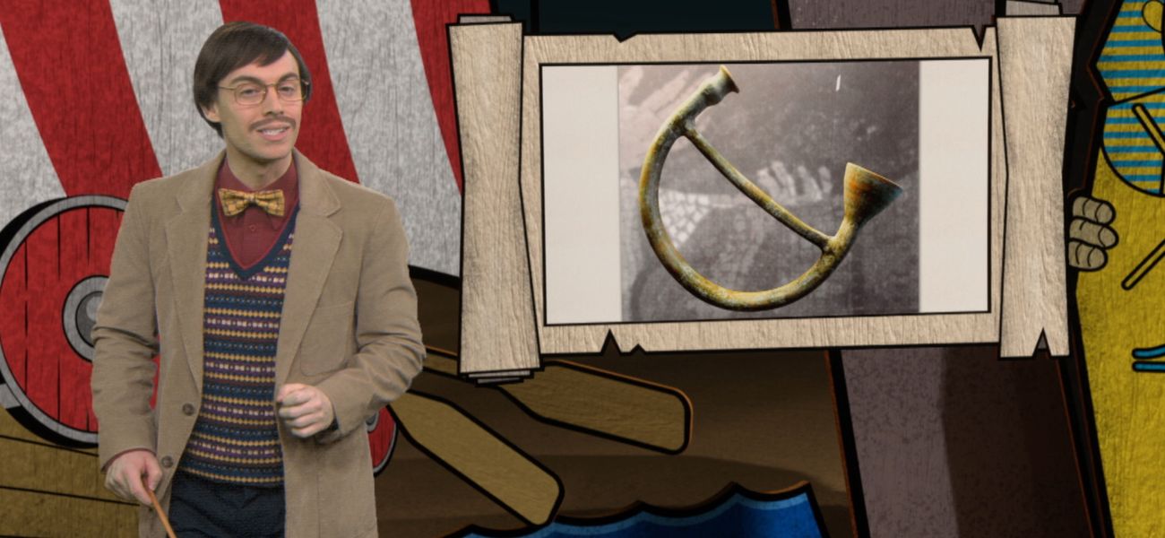 Christopher explains that the Etruscans, people of ancient Italy, knew how to work hot iron and had built a musical instrument that they had named horned.