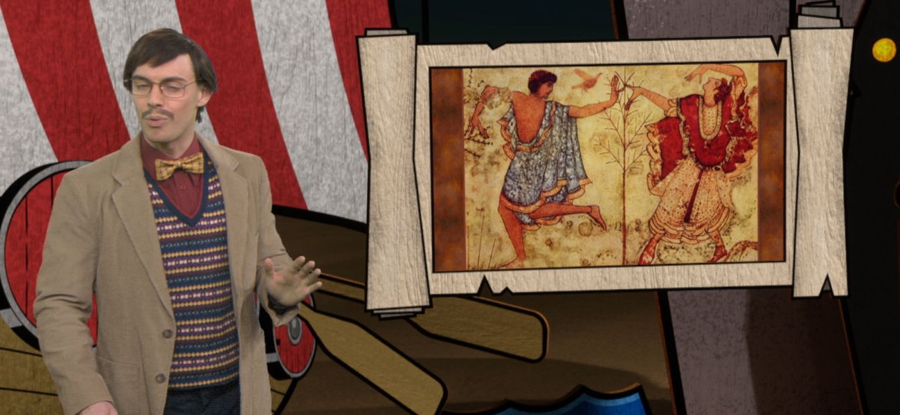Christopher explains that the men and women of ancient Italy wore the same clothes.