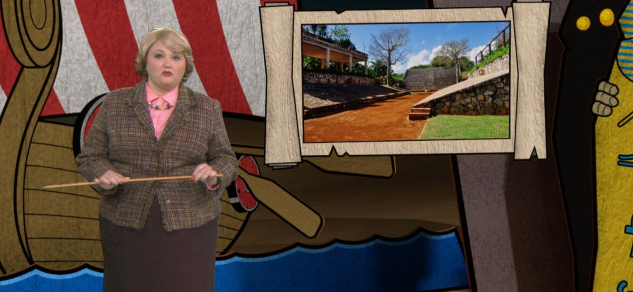 Josée explains that the Aztecs played soccer in their day: they found themselves on a ground where he had to pass a ball in a stone circle.