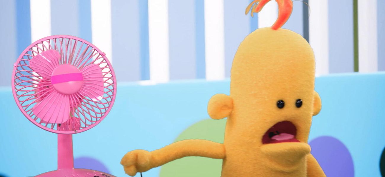 It is hot! Bertrand brings a fan and tries the three speeds. At the highest speed, Alphonse and Céleste are expelled from the crib. Ah, that's better! Bertrand feels comfortable in the crib by himself!