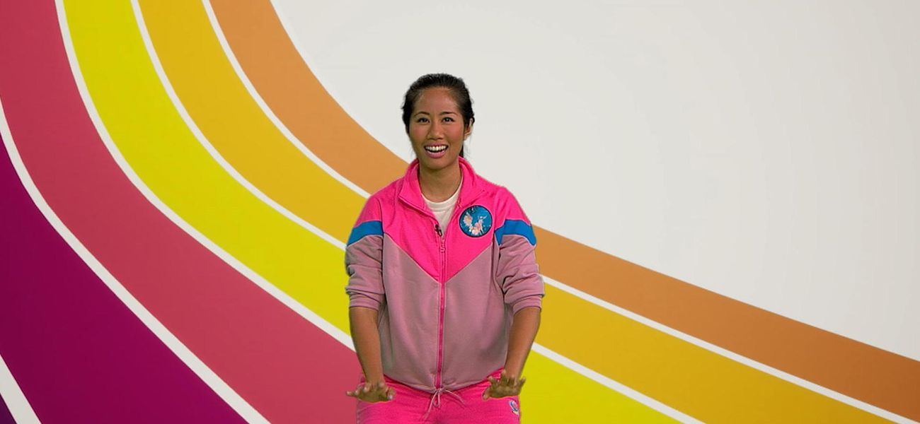 Wow, no time to be bored at home with Alice from Mini TFO. She proposes to the child to move by imitating a sport. Let's go for some imaginary tai chi! It will be fun. Let's go!