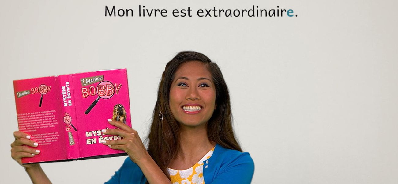 The featured adjective in this episode is: *extraordinaire*. Alice thinks her book is extraordinary and Christopher thinks his tablet is extraordinary, but their objects are extraordinary with an S. They realize that the adjective 'extraordinaire' takes the plural mark, but remains the same in the singular form!