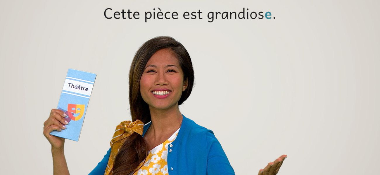 The featured adjective in this episode is: *grandiose*. Alice thinks this movie is grand and Christopher thinks this play is grand, but these works are grand with an S. They realize that the adjective 'grandiose' takes the plural mark, but remains the same in the singular!