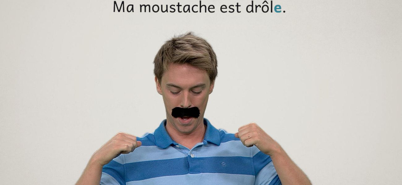 The featured adjective in this episode is: *drôle*. Alice's hat is funny. Christopher's mustache is funny. Their accessories are funny with an S. They realize that the adjective 'drôle' takes the plural mark, but remains the same in the singular!