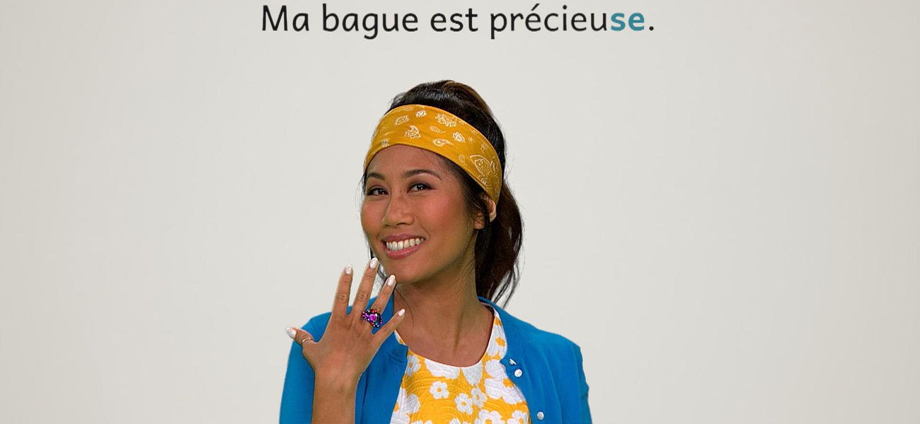 The featured adjective in this episode is: *précieux*. Christopher's necklace is precious. Alice's ring is precious. They realize that in French, the adjective 'précieux' is different in the masculine, in the feminine and plural form. One thing is for sure, their jewelry is precious..