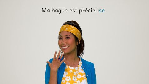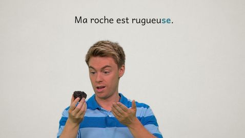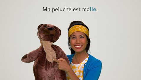 The featured adjective in this episode is: *mou*. Alice's pillow is soft and Christopher's stuffed animal is soft. They realize that in French, the adjective 'mou' is different in the masculine, in the feminine and plural form. One thing is for sure, both are soft.