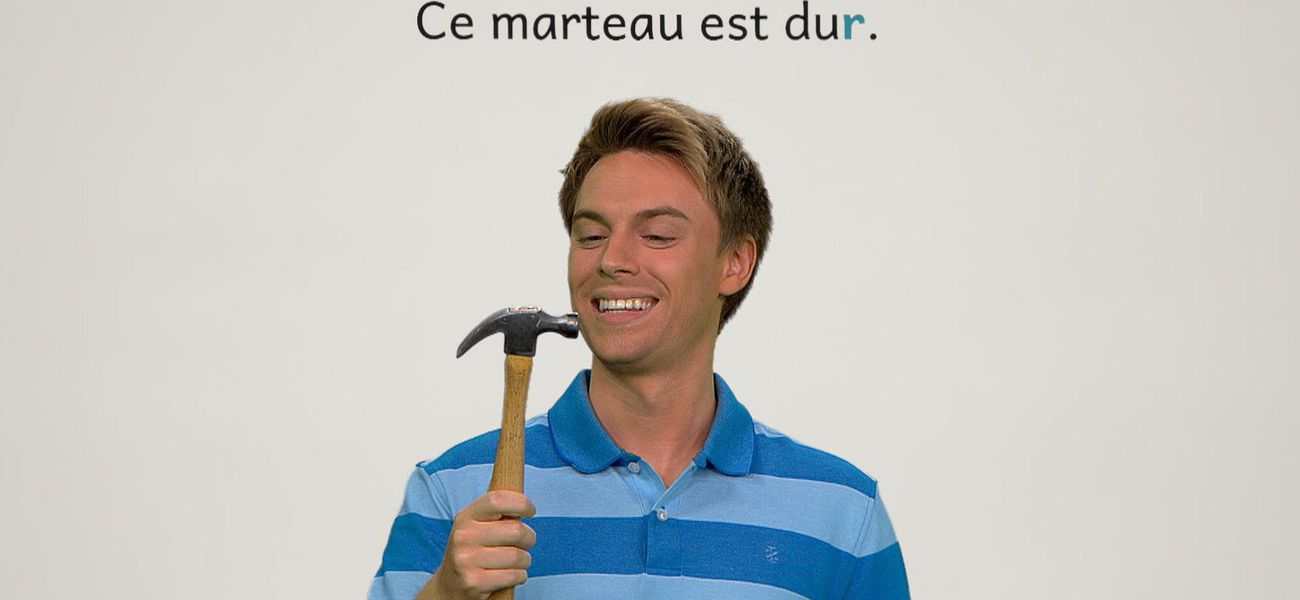 The featured adjective in this episode is: *dur*. Christopher realizes that his hammer is hard. Alice realizes her can is hard. They realize that in French, the adjective 'dur' is different in the masculine, in the feminine and plural form.One thing is for sure, both are hard.
