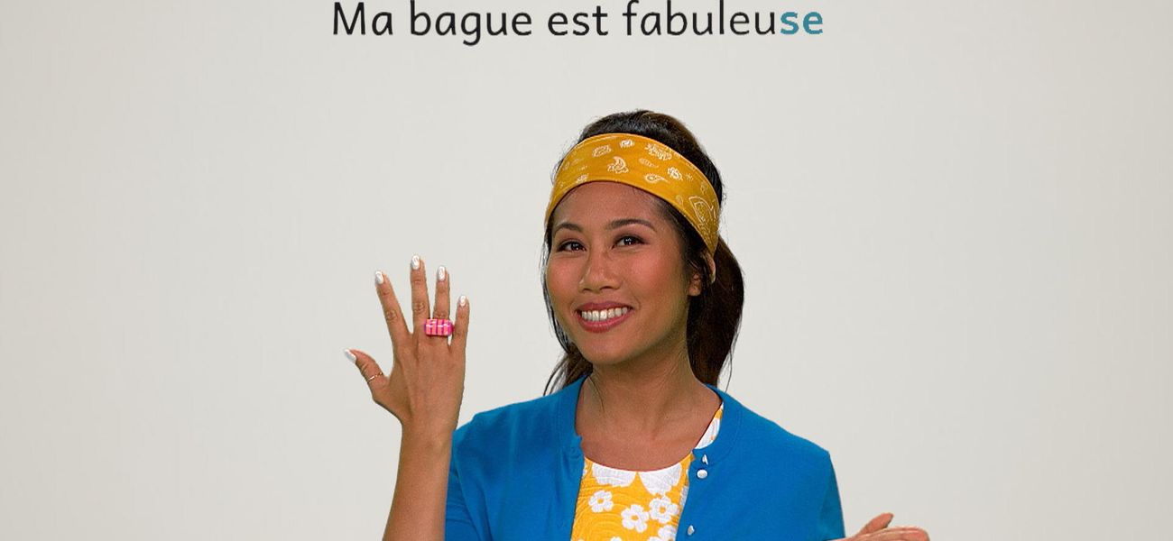 The featured adjective in this episode is: *fabuleux*. Alice thinks her dinosaur is fabulous. Eh, Christopher thinks his ring is fabulous. They realize that in French, the adjective 'fabuleux' is different in the masculine, in the feminine and plural form. One thing is for sure, these objects are fabulous.