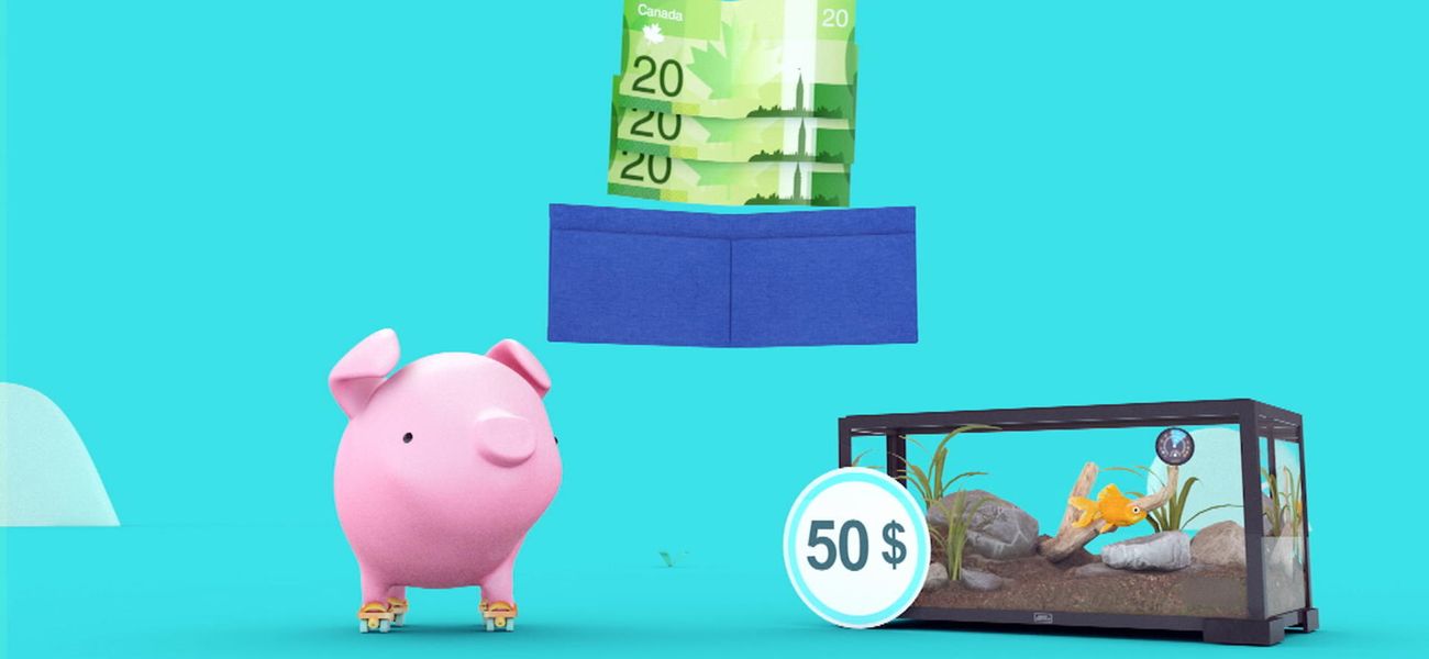 Avec l'aide d'une voix hors champ encourageante et de pièces 2D, l'enfant à la maison doit deviner combien d'argent le caissier doit lui redonner s'il veut acheter un poisson rouge et son aquarium à 50 dollars et qu'il a 60 dollars dans son porte-monnaie.