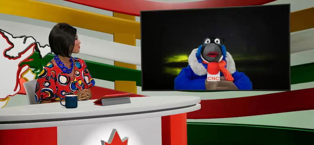 Today, news anchor Alice and her field reporter, puppet Jean-Christopher Bernache, take us to the Northwest Territories. This is the home of Yellowknife, the Northern Lights Capital of North America.