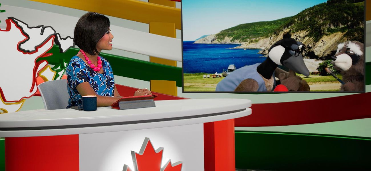 Today, news anchor Alice and her field reporter, puppet Jean-Christopher Bernache, introduce us to the world's largest violin! This sculpture is located on Cape Breton Island in Nova Scotia and is 18 meters high.