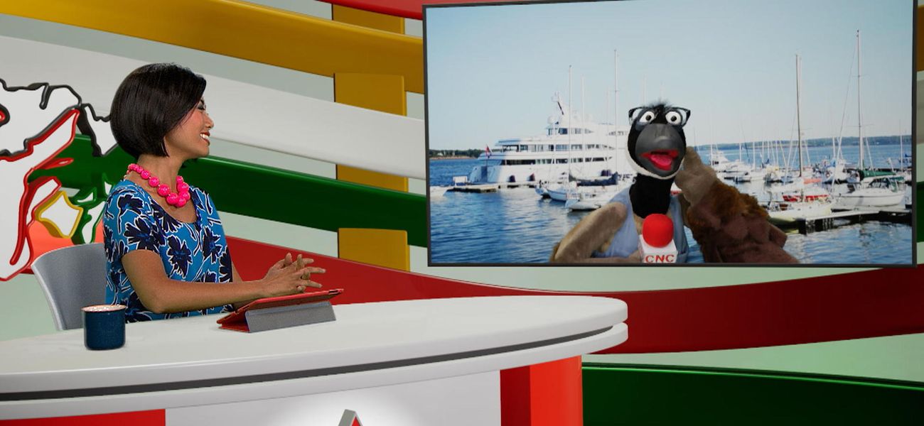Today, news anchor Alice and her field reporter puppet Jean-Christopher Bernache give us some fascinating details about the Prince Edward Island flag. What a flag!