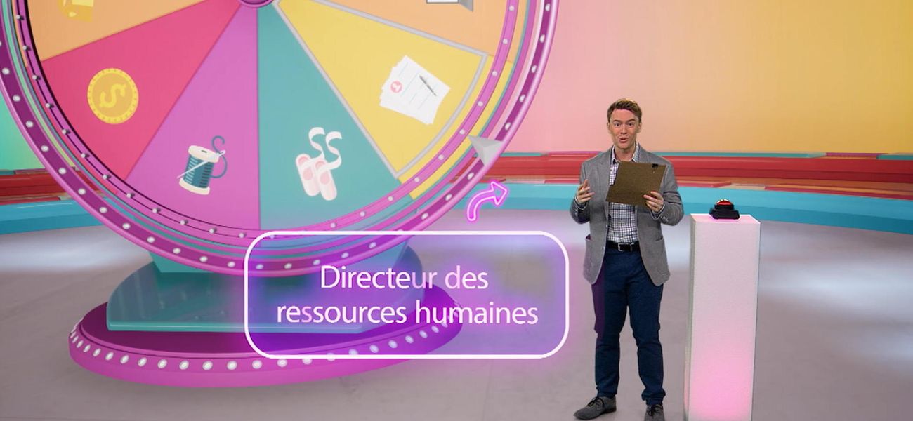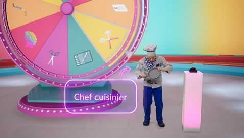 The player Christopher spins the game wheel and the job of the day is revealed to him... human resources manager! Wow, he discovers a lot of things about this fascinating job: what it consists of, what studies you need to do, etc.