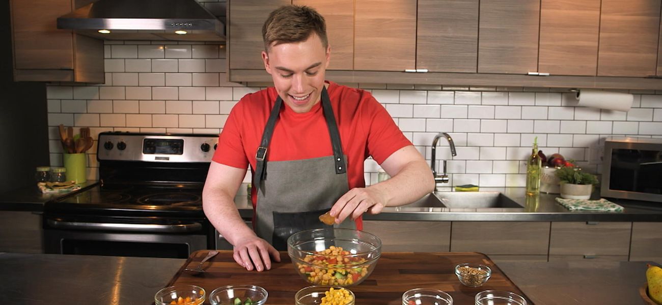 Christopher would like to cook a nice little dish for his family. What if he made a quinoa salad filled with crunchy vegetables and chickpeas, following the proportions recommended in the new Canada's Food Guide? Great idea! Get inspired to impress your loved ones too!