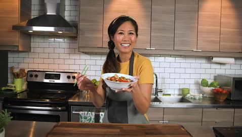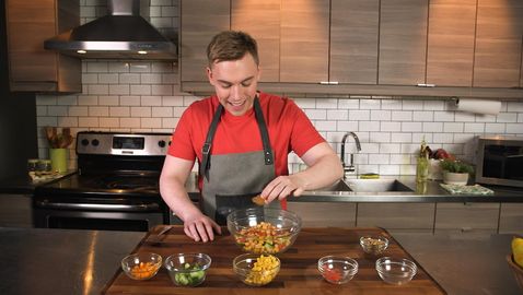 Christopher would like to cook a nice little dish for his family. What if he prepared a fusilli and pea salad using the proportions recommended in the new Canada's Food Guide? Great idea! Get inspired to impress your loved ones too!
