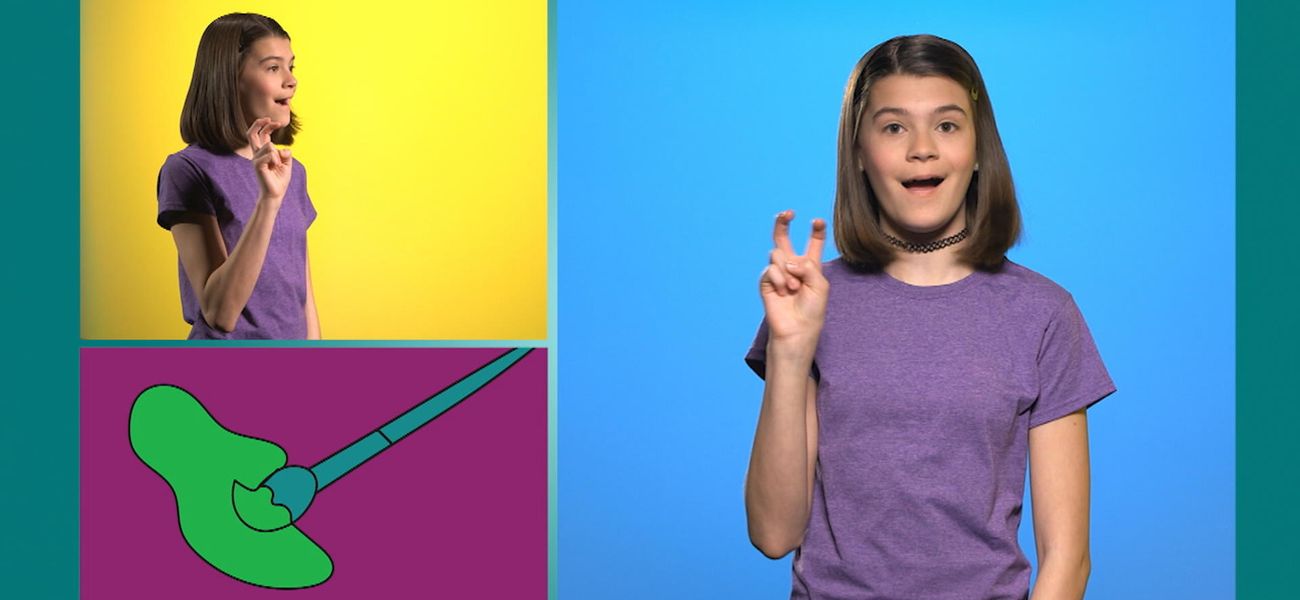 Your friend Emma is waiting to show you some new sign language (LSQ) words. Today, learn some colors. She'll show you how: green, purple and orange.