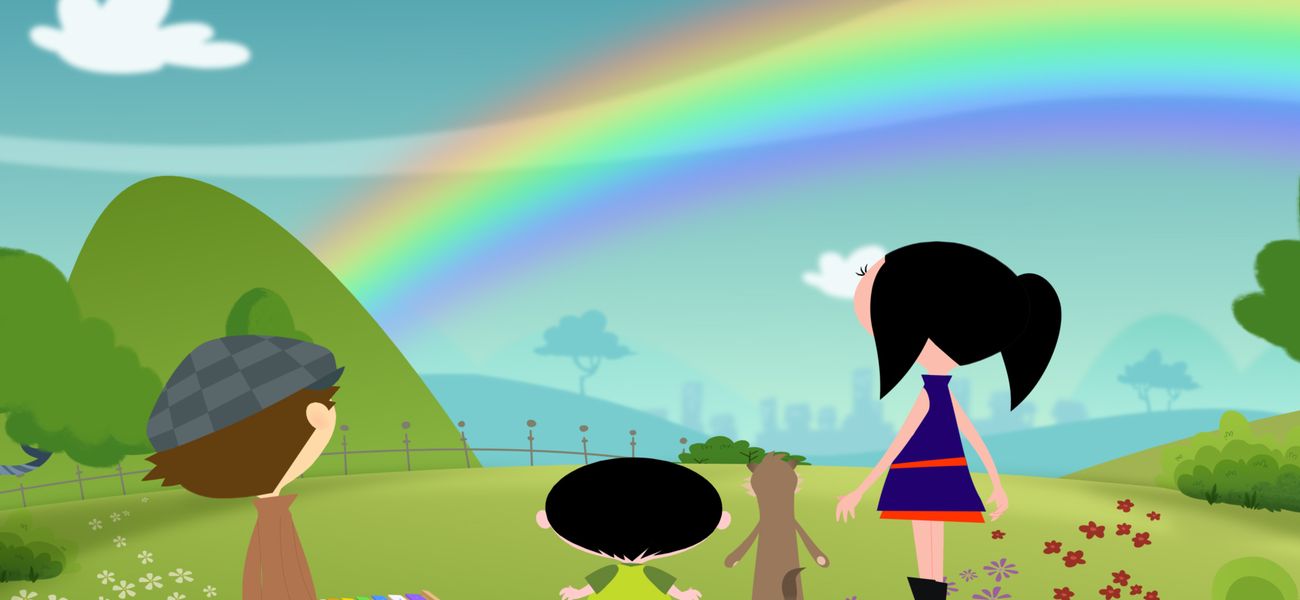The children are playing in the garden, when it starts to rain. The rain leaves behind a rainbow, but what is a rainbow and where exactly does it come from?
