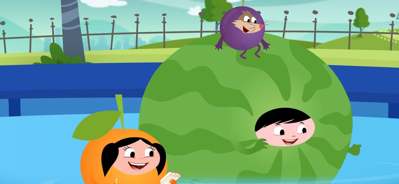 Luna's orange rolls down to the lake and eventually floats there. Jupiter's grape will sink. Why will it sink? They will learn that neither the size nor the weight of a fruit determines whether it floats or not.