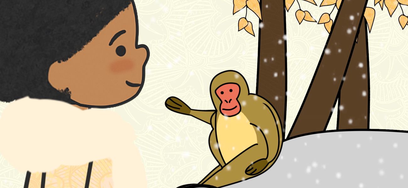 You are a monkey, and not just any monkey! You are the only monkey in the world to live in such a cold country... the snow monkey! Luckily, your beautiful beige fur is very, very warm! But what is this steaming bathtub? Oh yes, we are in Japan! There are a lot of volcanoes, and in some places, the spring water comes out of the heated earth! So when it's too cold, you leave the forest to come and warm up, like us humans!