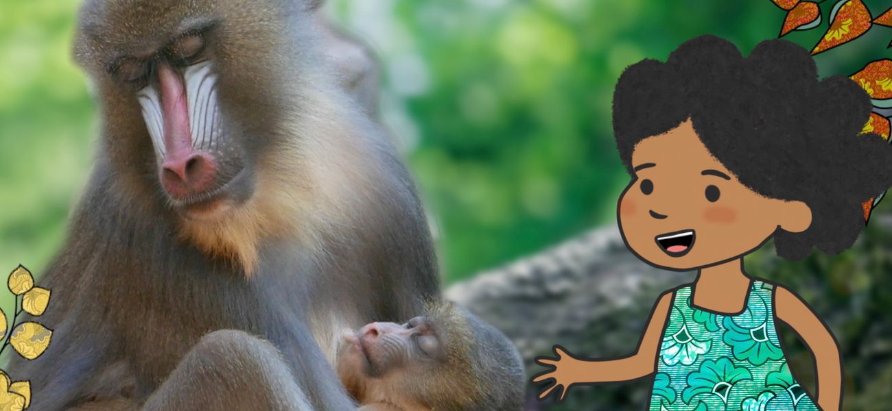 Dear mandrill! You are a monkey with extraordinary colors! The harlequin of the rain forest! A blue and red face. The more important your position in the group is, the more your face will become colored. The dominant male has the reddest nose! And beware of the one who tries to take his place!