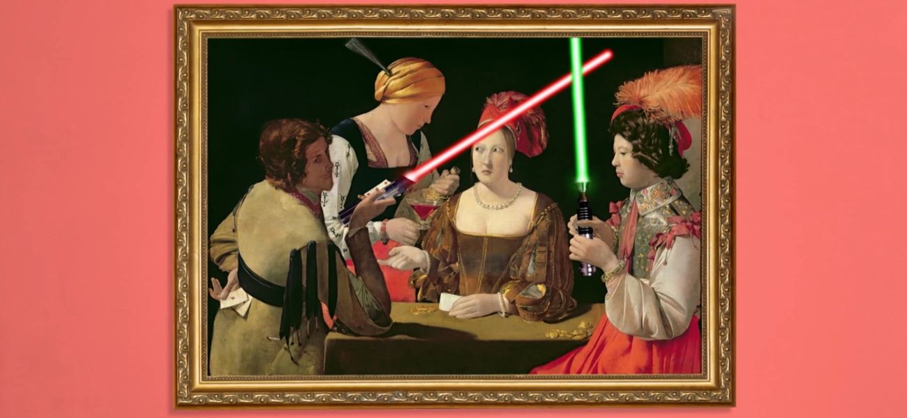 In this episode, the children discuss the painting The Cheat with the Ace of Diamonds by Georges de La Tour. As the painting's title suggests, this painting depicts someone cheating at cards in a game once called 'Prime,' the forerunner of poker. Georges became rich and famous with his artistic talents. In terms of style, like many artists of the seventeenth century, he was very influenced by the works of Caravaggio, and was therefore obsessed with light and shadow. It is no coincidence that the only face in the shadows in this work is... the cheater.