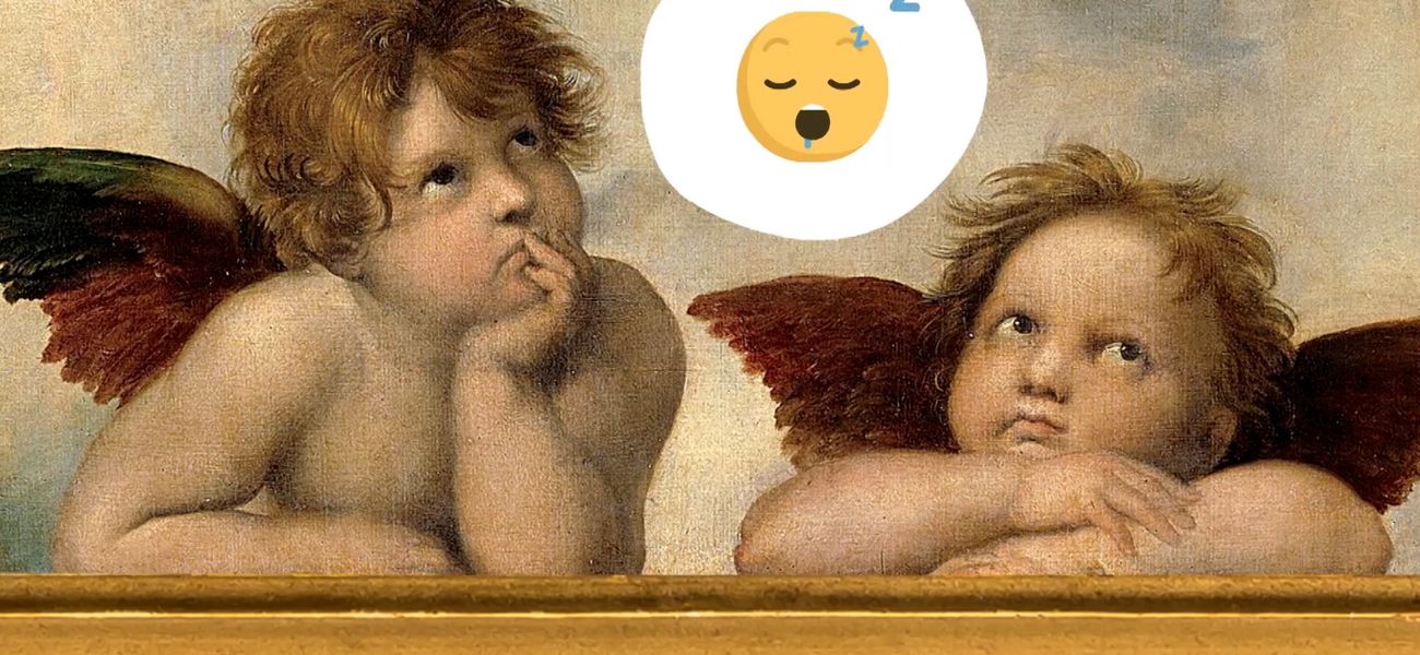 In this episode, the children discuss Raphael's Sistine Madonna. In this painting, the Virgin Mary is shown holding the Christ Child in her arms on a cloud while a saint, a woman and two cherubs are shown. Raphael painted many religious scenes and is known as the Prince of Painters.