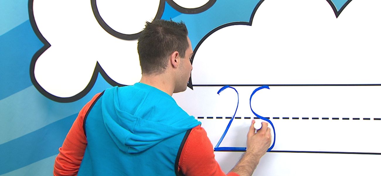 Louis and Josée present the numbers from 1 to 30. Josée presents the number 1.