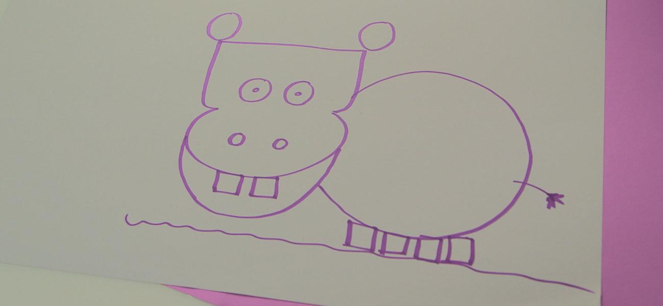 How to draw a hippo? Tristan uses various geometric shapes and a slice of bread to draw a hippo.