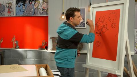 Tristan teaches us to draw a lobster, using geometric shapes.