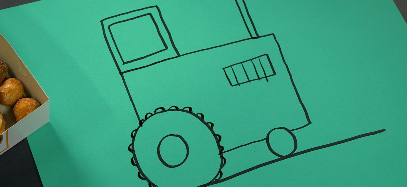 How to draw a tractor? Tristan uses the shape of a doughnut and different geometric shapes to draw a tractor.