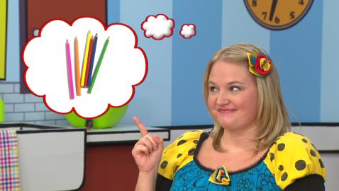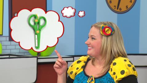 Louis et Josée font des activités, mais il leur manque quelque chose. Josée est en train de coller des images sur un papier. Qu'est-ce qui lui manque?