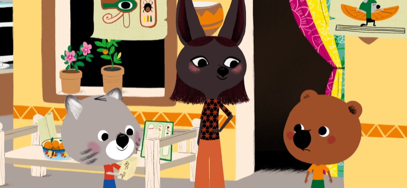 Mouk and Chavapa are in Egypt. Chavapa has taken a passion for deciphering hieroglyphics, the writing of the ancient Egyptians. This is a great opportunity for Mouk and Chavapa to go for a pedal boat ride on the Nile to visit the papyrus factory on the other side of the river.