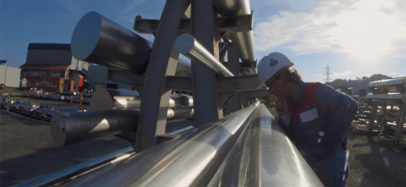 Throughout this capsule, which illustrates each step in the creation of an aircraft part, from the extraction of titanium in a quarry, a counter rotates rapidly and displays the distance traveled, from 0 cm to 6306 kilometers.