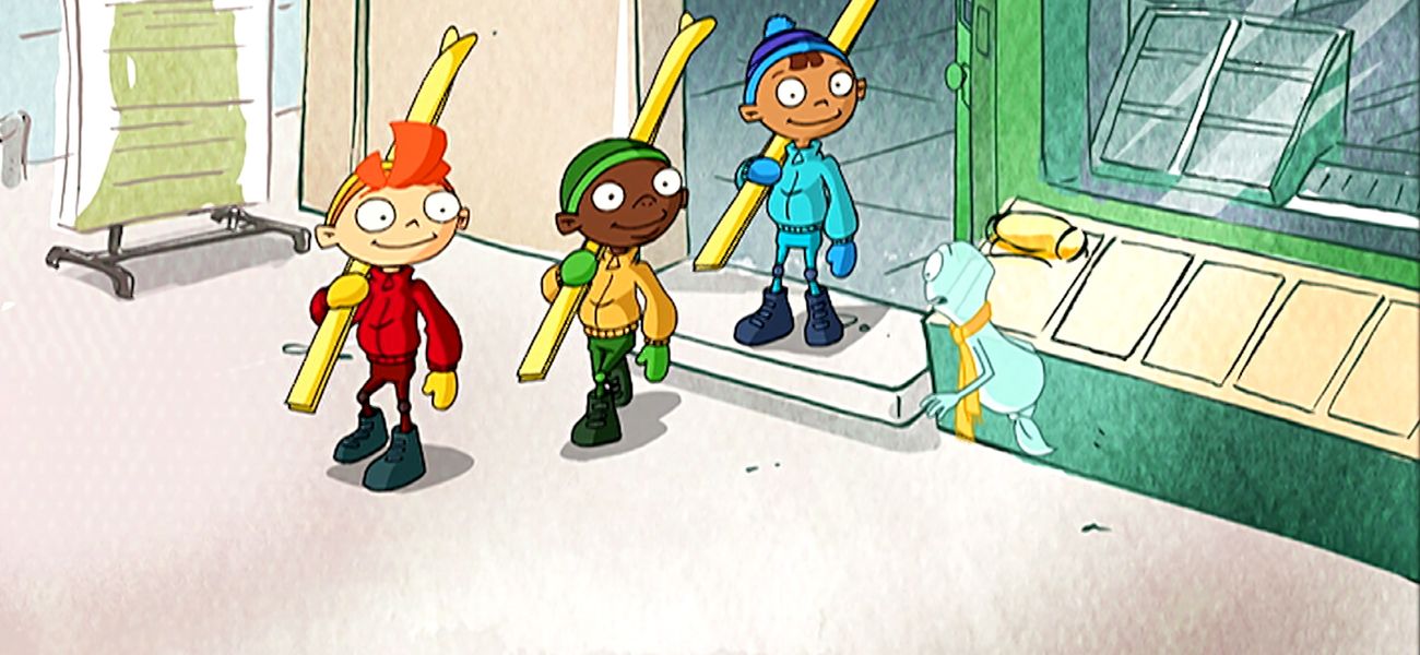 In a ski shop Lucas, Brice and Thomas see spectacular photos of amateur skiers. They would love to have their picture on display too, so they decide to do the same. Problem, they do not have a camera. Only Emma has one, but she is ask for so many conditions to lend them to them, that they buy a disposable camera instead. At the top of the slopes, Lucas uses a special key to adjust the skis of Brice and his own. Thomas is in place for the photos and Lucas rushes. He immediately lost a ski whose binding system was not tight enough. Brice cannot avoid Lucas, and bumps into a tree where he remains in the impossibility to take off his shoes, his bindings being too tight. Ski bindings must always be adjusted by a specialist.